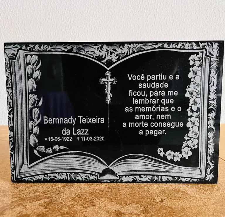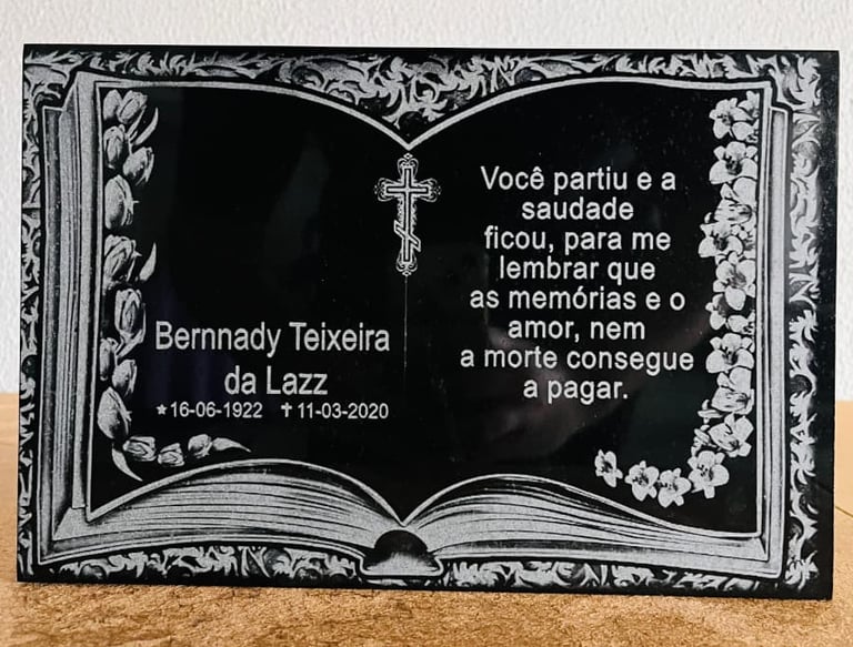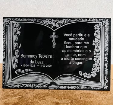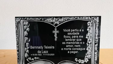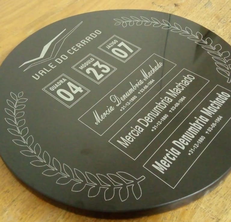 Prestamos serviços de personalização a laser em placas, lápides e no ramo têxtil, oferecendo soluções para pessoas e empresas que buscam qualidade e rapidez.