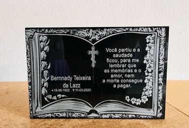 Prestamos serviços de personalização a laser em placas, lápides e no ramo têxtil, oferecendo soluções para pessoas e empresas que buscam qualidade e rapidez.